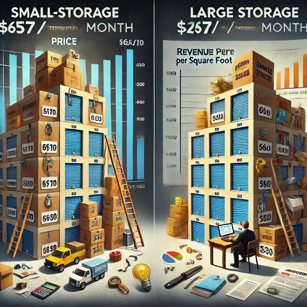 A 10×30 unit doesn’t cost 3x as much to build as a 10×10.