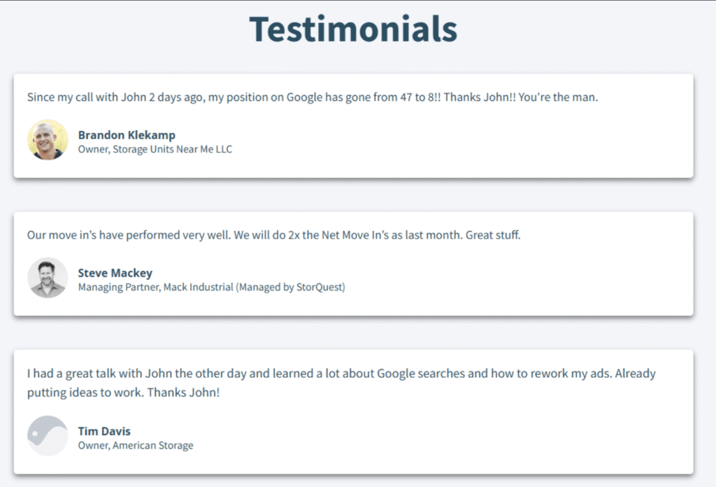 Book a Call (use STORAGEVAULT code for free marketing analysis!)